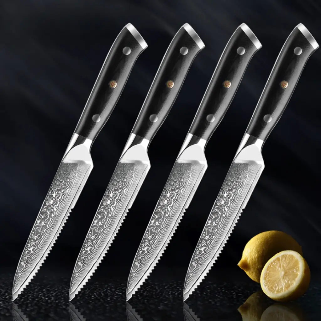 Damascus Steel Steak Knife Set with G10 Handle (Executive Series)